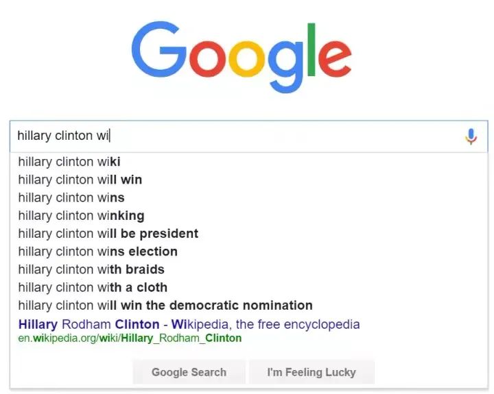 美國(guó)獨(dú)立媒體SourceFed也爆料稱,谷歌的搜索服務(wù)的聯(lián)想詞功能,有偏向民主黨總統(tǒng)競(jìng)選人希拉里的嫌疑。